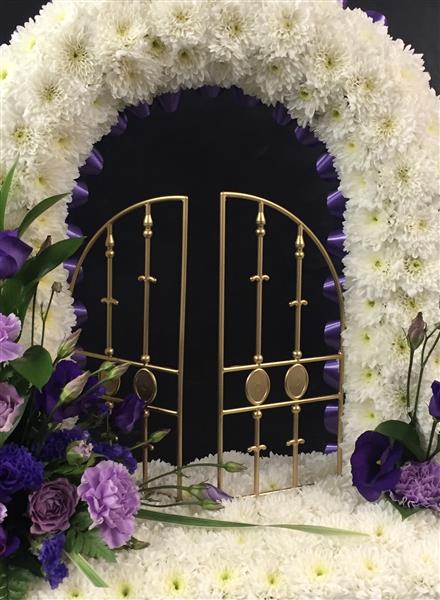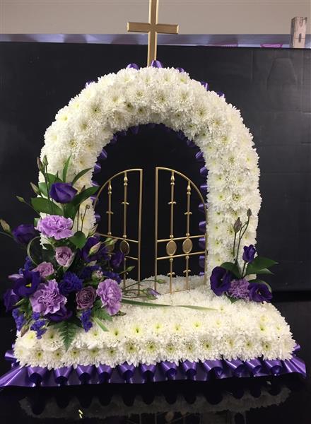 A massed tribute of white chrysanthemums with sprays available as pictured or in your choice of colour.