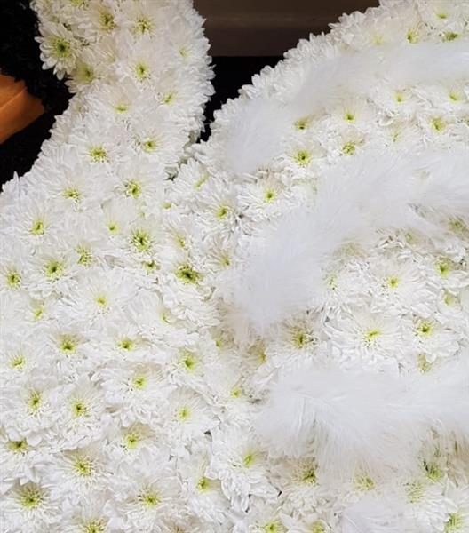 A stunning 2D based floral tribute of a swan, on a frame hand carved by our own florists.